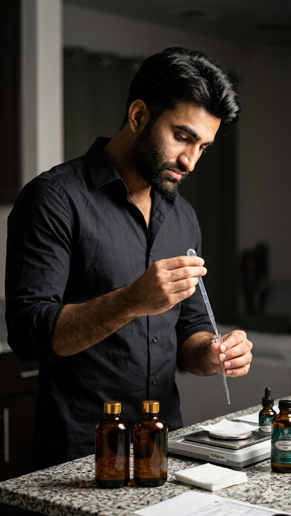 So I took it further. Filed an LLC. Found the highest quality botanical suppliers I could. Taught myself to formulate by weight on a milligram scale instead of counting drops from a bottle. Read more IFRA safety regulations and FDA cosmetic compliance documents than I ever expected to.